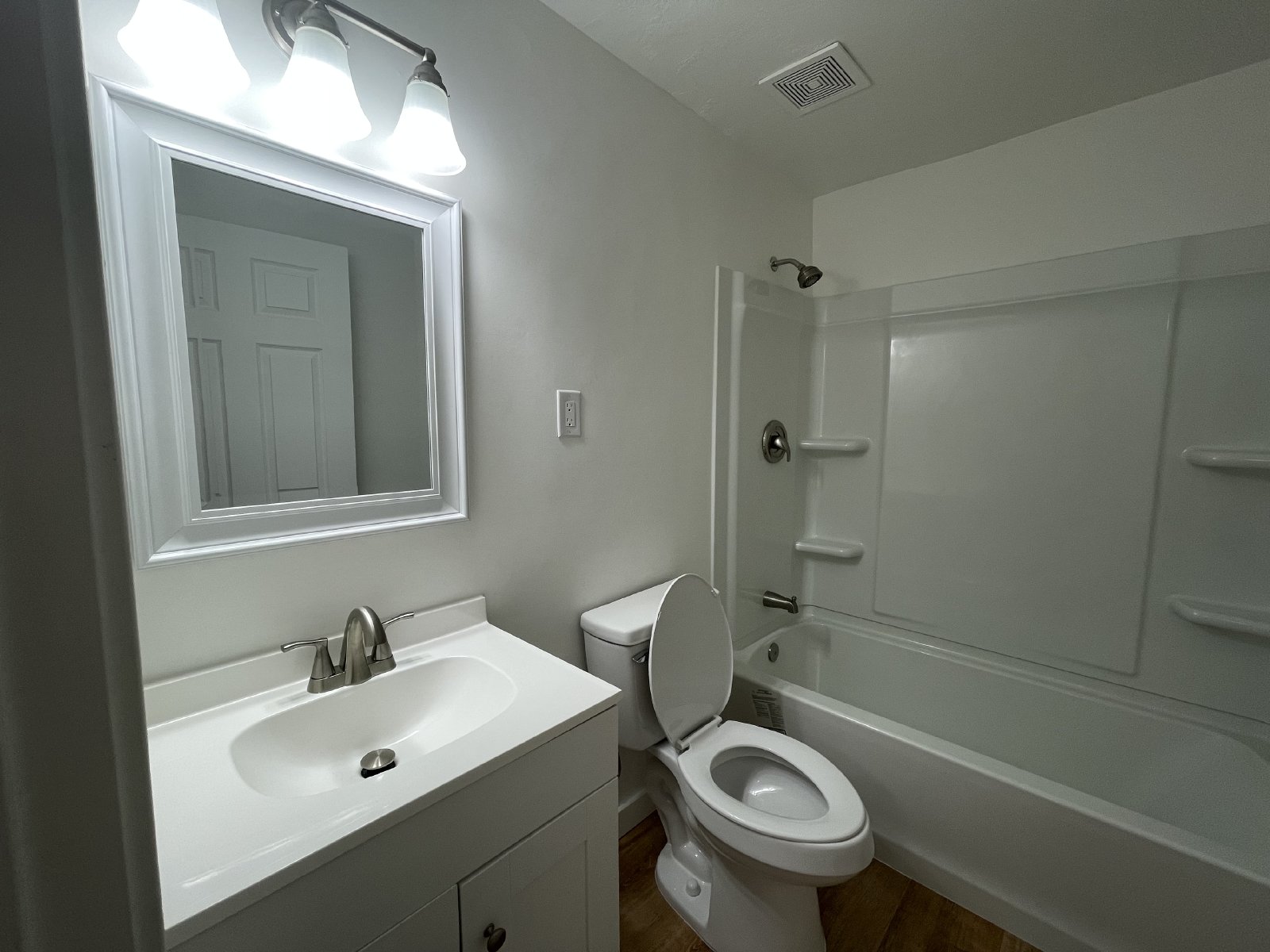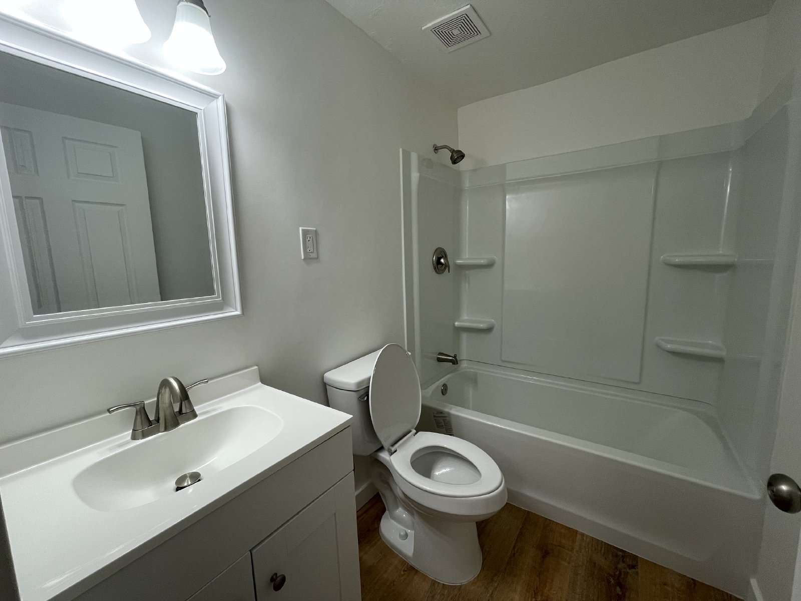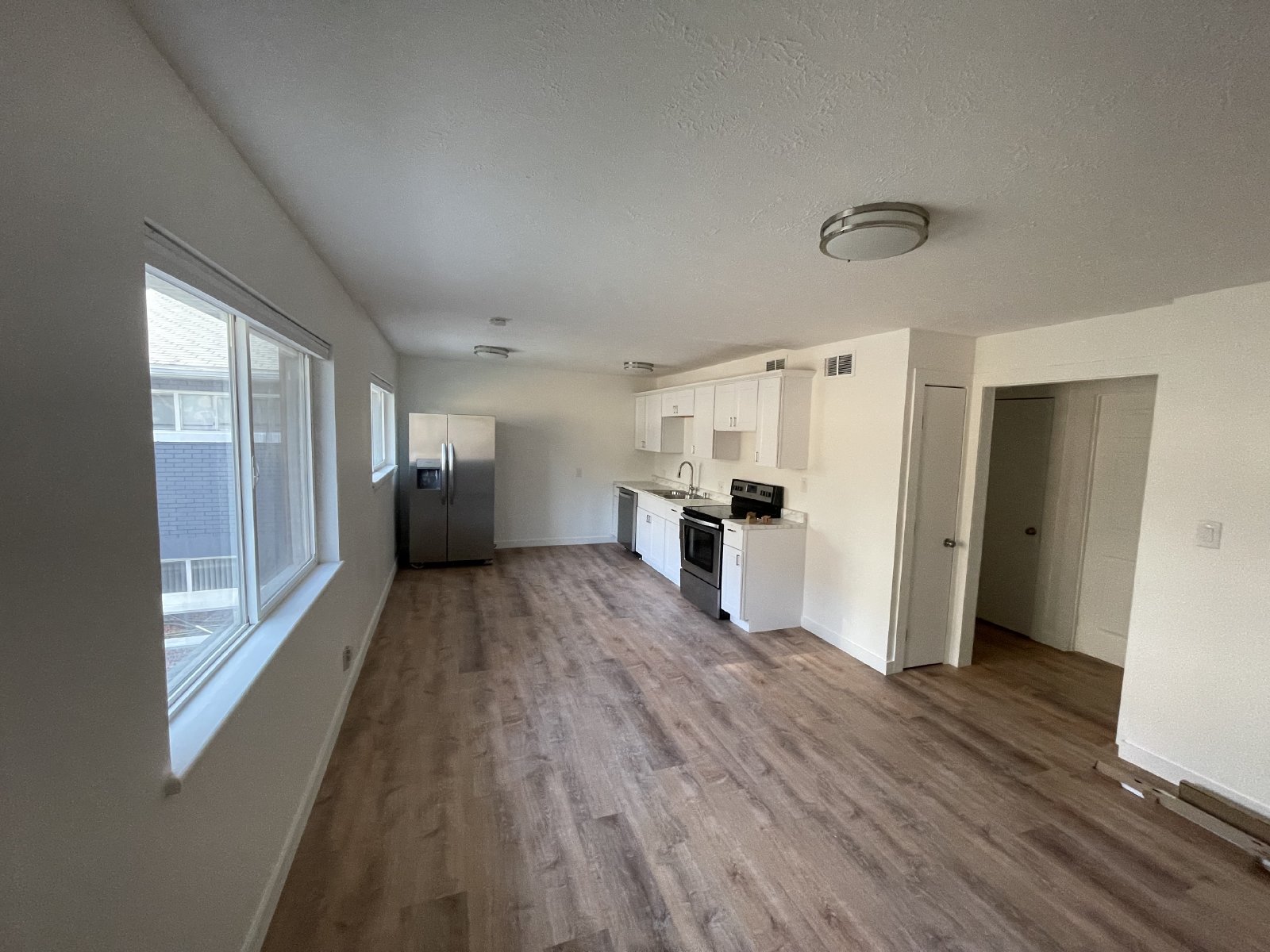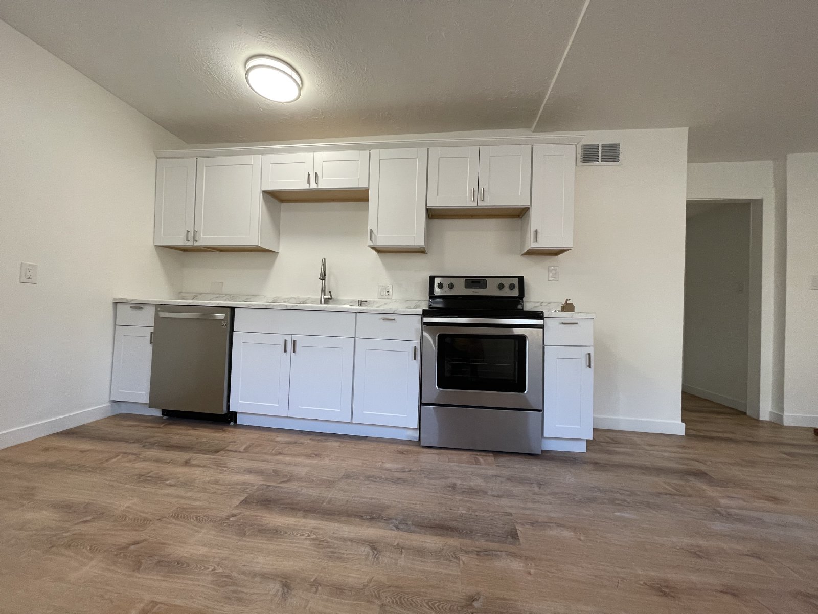 Vinyl planks throughout the apartment so you don't have to deal with grime accumulated for years, or carpet cleaning fees when you move out.